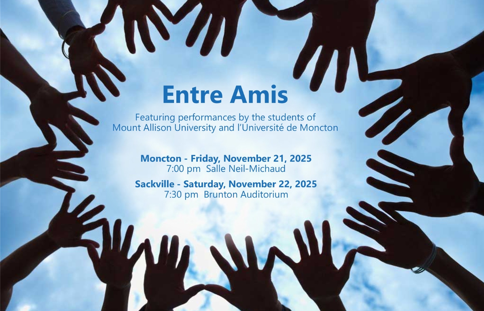 An annual recital featuring student performers from Mount Allison University and l’Université de Moncton. (Moncton concert takes place on November 21, 7pm in Salle Neil-Michaud.) Admission is free; all are welcome to attend. For information call 506-364-2374 or email music@mta.ca.