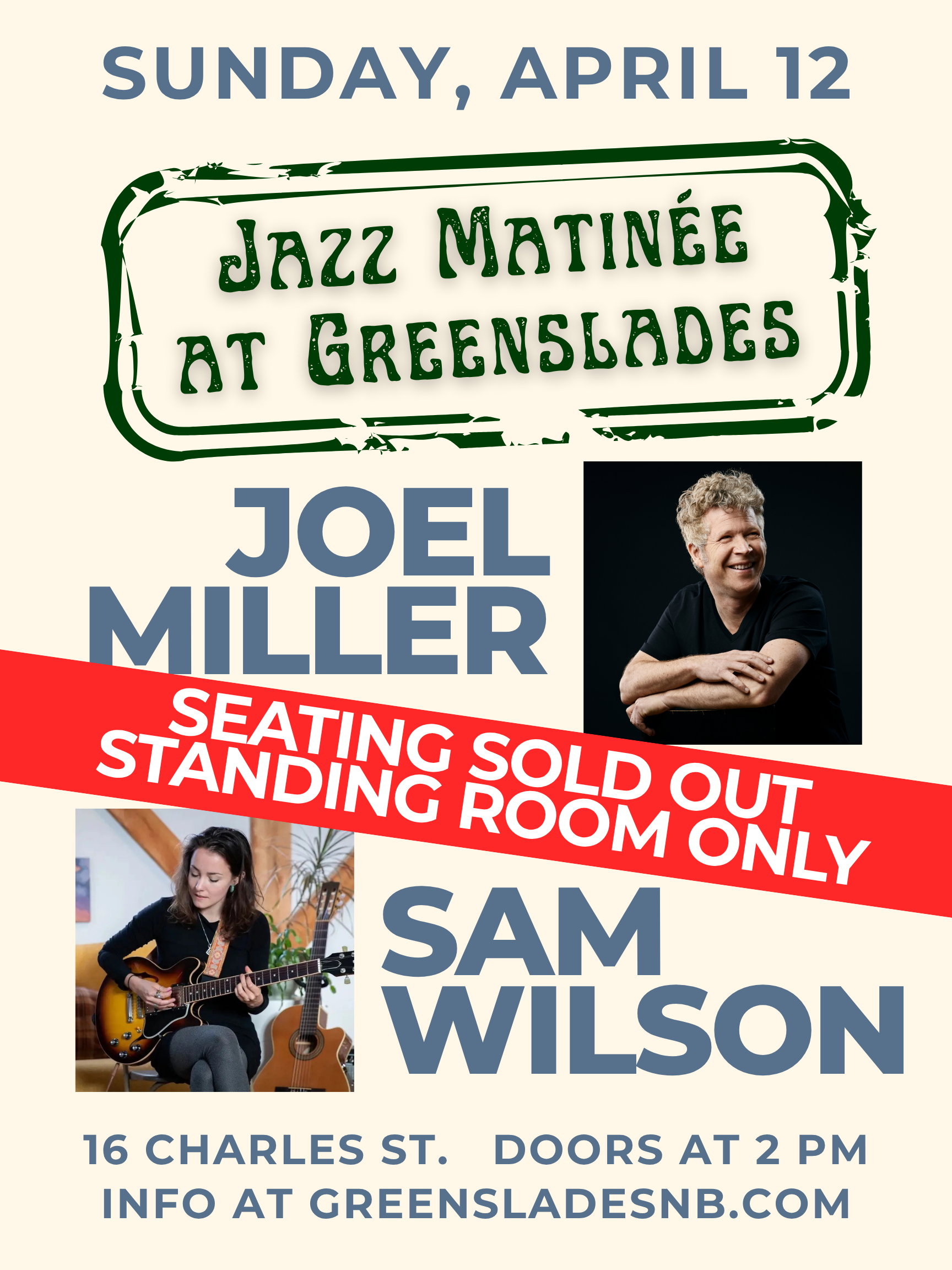 Sackville’s own Juno-winning saxophonist Joel Miller and celebrated Halifax guitarist Sam Wilson team up for a special jazz matinee at Greenslades. Advance seating for this show is SOLD OUT but there will be standing room available on a limited basis.