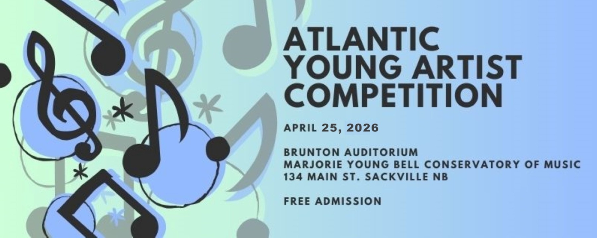 Come see the next generation of performing artists take the next step in their careers! Performing live in Brunton Auditorium: 1:05pm Gillianne Smith, piano; 2:00pm Jenny Chen, piano; 3:00pm Nathan Wright, saxophone; 3:45pm Blake Shepherd, piano. The Atlantic Young Artist Competition and Tour are projects of the Canadian Federation of Music Teachers’ Associations (CFMTA) and its provincial counterparts in the Atlantic region.